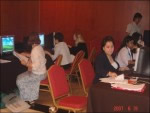 Tampak 6 dari 20 unit komputer yang digunakan pada acara ini, selalu penuh digunakan oleh para delegasi (peserta forum). Selain para peserta, para wartawan juga memanfaatkan fasilitas komputer ini untuk mengirim dokumen via email ke redaksi-nya masing-masing. |