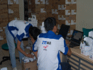 Seorang teknisi Raja Rental sedang menyiapkan Notebook yang akan digunakan dalam proses upgrading handset ini. Tampak pada gambar tumpukan dus-dus handset merk ZTE C321 yang keseluruhannya berjumlah 38.000 unit handset yang akan dipasarkan di daerah Bandung dan sekitarnya. |
